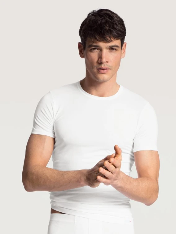 Rundhals-T-Shirt in Top-Qualität, das Sie unkompliziert durch den Tag begleitet. Superweiche PIMA Langstapel-Baumwolle wird zu elastischem, formstabilem Single Jersey verarbeitet. Durch Compact Ausrüstung bleiben die Farben auch nach häufigem Waschen brillant. Sehr angenehm sind die flachen, weichen Nähte und das glatte feine Gewebe. Den Saum ziert dezent ein kleines CALIDA Label mit rot-weißem Kreuz.