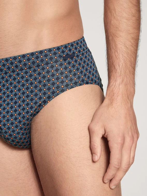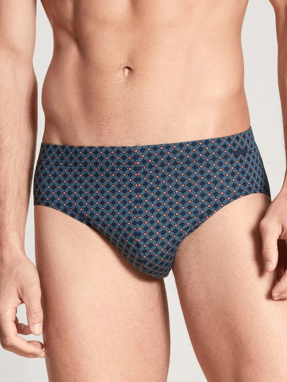 Wenn es um selbstbewusst maskuline Unterwäsche geht, legt der GRAFIC COTTON Slip von CALIDA die Messlatte hoch: Die klassisch geschnittenen Briefs mit überzogenem Bund verschwinden mit hochwertiger Verarbeitung und hautfreundlicher Supima®-Baumwollqualität praktisch unsichtbar unter allen Hosen. Schade eigentlich, denn das elegante Retro-Muster kann sich wirklich sehen lassen.