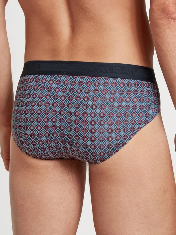 Wenn es um selbstbewusste, maskuline Unterwäsche geht, legt der GRAFIC COTTON Slip von CALIDA die Messlatte hoch: Die klassisch geschnittene Brief mit weichem Softgummibund verschwindet mit hochwertiger Verarbeitung und hautfreundlicher Supima®-Baumwollqualität praktisch unsichtbar unter allen Hosen. Schade eigentlich, denn das elegante Retro-Muster kann sich wirklich sehen lassen.