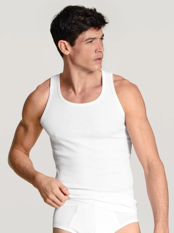 Maskuline Sportlichkeit aus anschmiegsamem Single Jersey: Das NATURAL BENEFIT Athletic Shirt ist ein atmungsaktives CALIDA Basic für jeden Tag. Die hochwertige Baumwollqualität mit glatter Oberfläche bleibt unter Shirts und Business-Hemden praktisch unsichtbar. Ein Schuss Elasthan sorgt für den optimalen Sitz und eine körperbetonte Silhouette. Fliegender Wechsel? Kein Problem: Der Unterhemd-Klassiker kommt im Doppelpack.