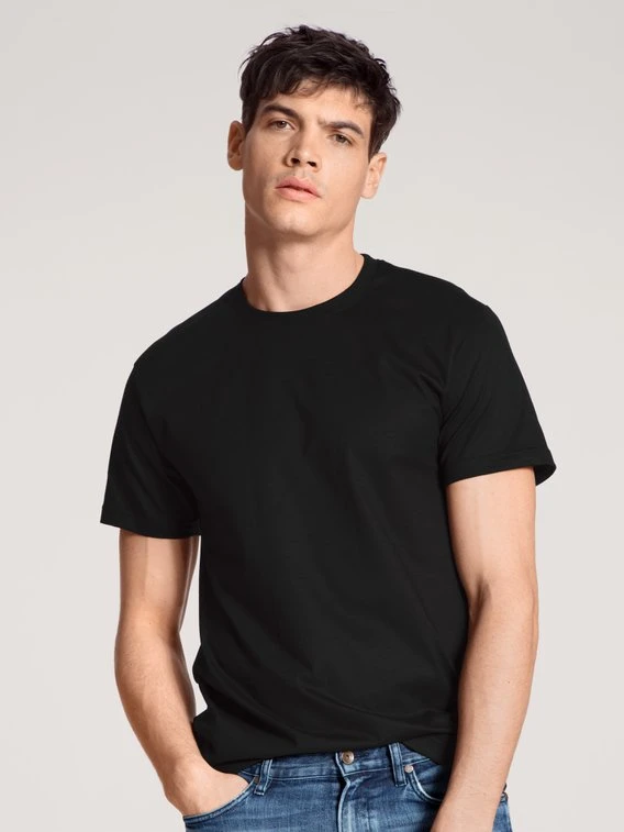 Die klassischen T-Shirts im Doppelpack mit Rundhalsausschnitt der Natural Benefit Kollektion von CALIDA verbinden zeitlose Form und höchste Qualität: Dank feinster Jersey-Baumwolle überzeugen die T-Shirts nicht nur in der Qualität, sondern auch mit perfekter Passform und exzellenter Verarbeitung. Der klassisch-moderne Schnitt sorgt für eine maskuline Optik und passt sich dem Körper perfekt an.