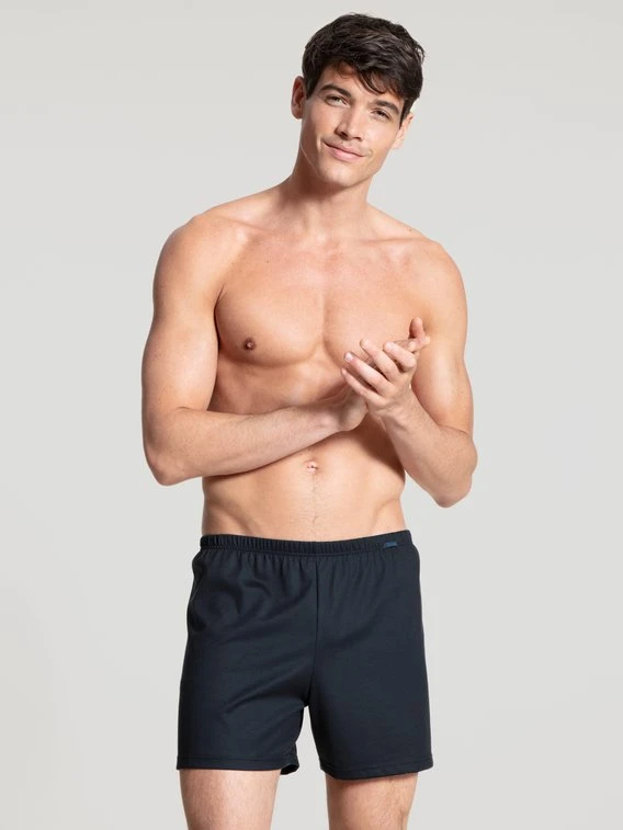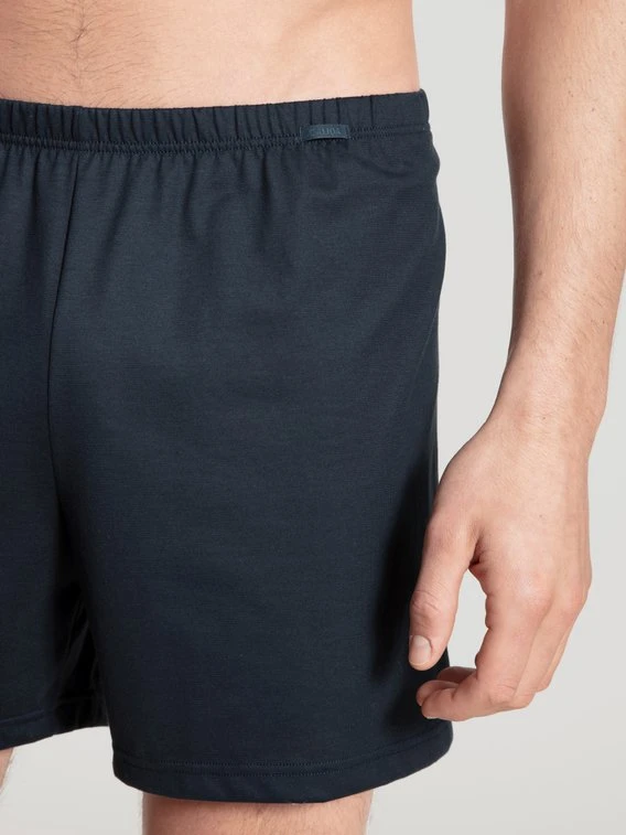 Beliebter Klassiker von CALIDA: lässige Jersey-Boxershorts ohne Eingriff, deren bequeme Schnittform überzeugt. Unser Tipp: Kombiniert zu einem unifarbenen T-Shirt der PRINTS-Serien entsteht ein toller Kurz-Pyjama zum attraktiven Preis.