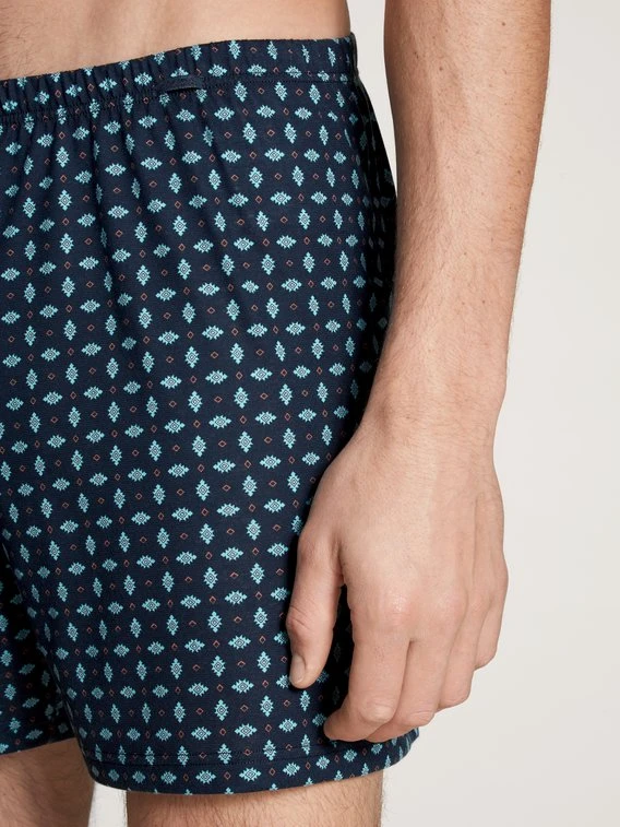 Beliebter Klassiker von CALIDA: lässige Jersey-Boxershorts ohne Eingriff, deren bequeme Schnittform überzeugt. Unser Tipp: Kombiniert zu einem unifarbenen T-Shirt der REMIX-Serien entsteht ein toller Kurz-Pyjama zum attraktiven Preis.