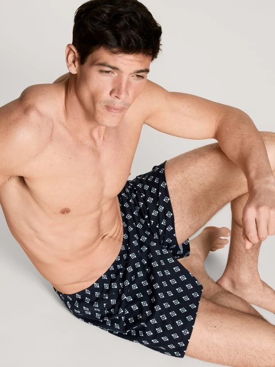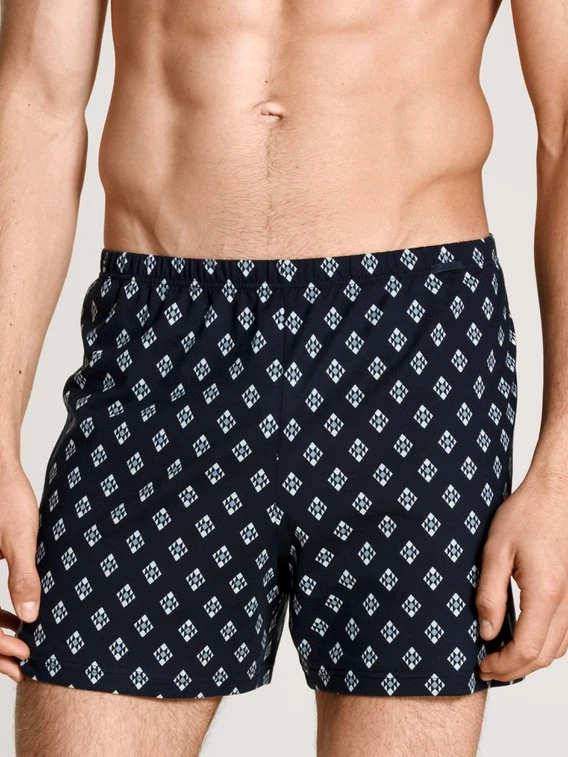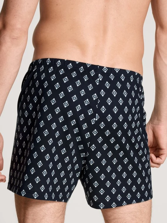 Beliebter Klassiker von CALIDA: lässige Jersey-Boxershorts ohne Eingriff, deren bequeme Schnittform überzeugt. Unser Tipp: Kombiniert zu einem unifarbenen T-Shirt der REMIX-Serien entsteht ein toller Kurz-Pyjama zum attraktiven Preis.