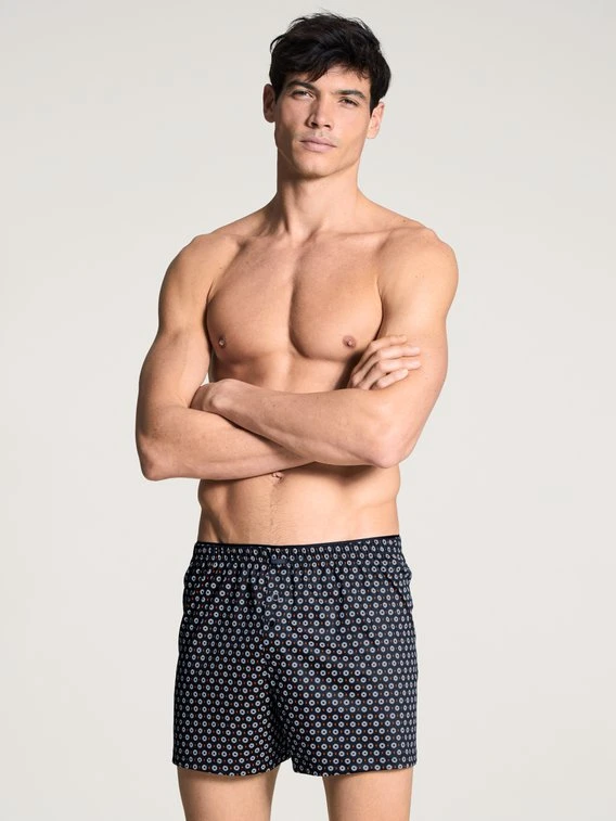 Lässige Boxershorts von CALIDA aus 100% feinster Baumwolle in swiss+cotton-Qualität. Die Boxer aus der Serie SELECTED COTTON in Interlock-Bindung besticht durch klassisches Design und einen stoffbezogenen Komfortbund mit weicher Innenbund-Verarbeitung. Der Eingriff wird mit zwei kleinen Knöpfen mit dem CALIDA-Logo verschlossen.