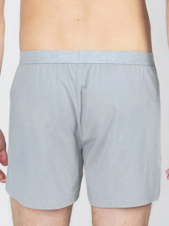 Lässige Boxershorts aus der Serie “Karl” der Marke ERLICH TEXTIL. Das elastische Baumwoll-Jersey hat einen super-soften Griff ohne dabei zu flatterig zu sein. Der Softgummi-Bund mit Logo-Fähnchen sitzt bequem auf der Hüfte. Die Schnittform der Herrenunterhose ist gerade so locker, dass sie sich auch nicht unter der Oberbekleidung abzeichnet. Das Model ist 1,85m groß und trägt die “Karl”-Boxer in der Größe L.