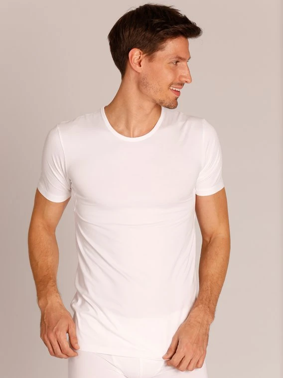 Ausgezeichnet! Enganliegendes Roundneck-Shirt aus hochwertiger Baumwolle, Micro-Coolmax und Lycra. Innovative Wäsche für ihren Alltag mit nützlichen Zusatzfunktionen: sehr guter Feuchtigkeitstransport, hohe Atmungsaktivität, kurze Trocknungszeit und geruchshemmende Wirkung. Spezielle Thermofixierung des Elasthans sorgt für eine langanhaltende Formbeständigkeit.
