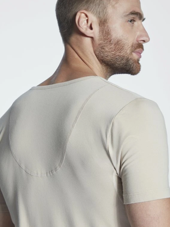 V-Ausschnitt und atmungsaktiver Nackenbereich