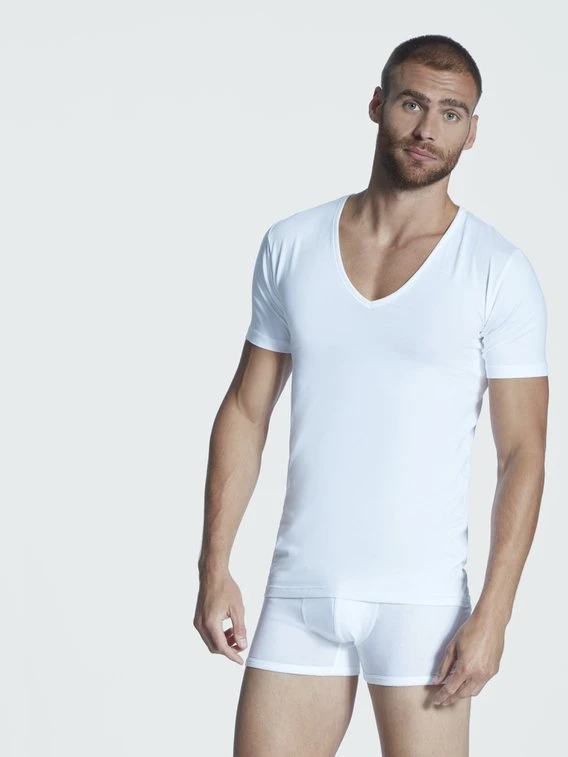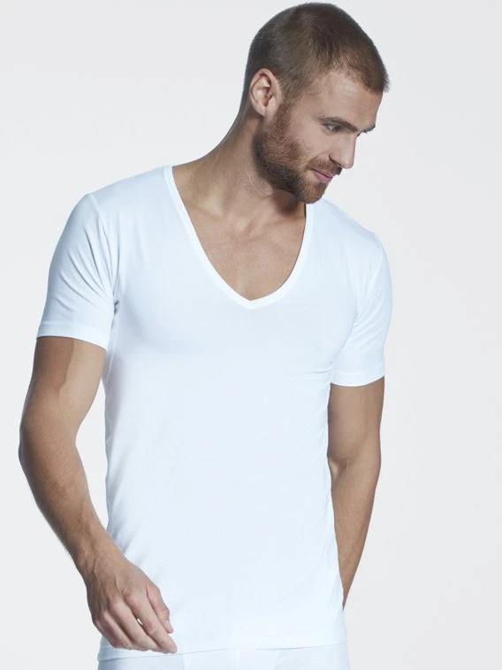 Mit diesem funktionalen Unterhemd von MEY erhalten Sie den absoluten Frischekick. Die verarbeiteten COOLMAX® Fasern sowie die innovative Gitterstruktur mit Ventilationssystem verbessern die Feuchtigkeitsregulierung und sorgen so für ein angenehm kühles und trockenes Tragegefühl. Spezielle Einsätze unter den Armen reduzieren dabei die Bildung von Schweißflecken und wirken geruchshemmend. Dank des tiefen V-Ausschnitts bleibt das Kurzarmshirt unter dem Business-Hemd unsichtbar. All das macht dieses T-Shirt zum perfekten Drunterhemd!
