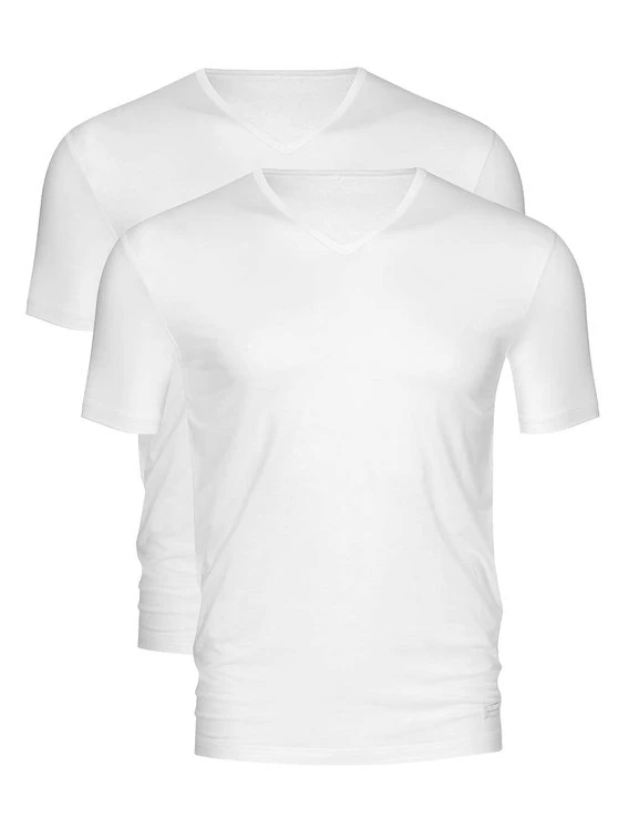 Ausgezeichnet mal Zwei! Eng anliegendes T-Shirt mit V-Ausschnitt aus hochwertiger Baumwolle, Micro-Coolmax und Lycra. Innovative Wäsche für den Alltagsbedarf mit optimalen Zusatzfunktionen: sehr gute Feuchtigkeitstransport, hohe Atmungsaktivität, kurze Trocknungszeit sowie geruchshemmende Wirkung. Spezielle Thermofixierung des Elasthans sorgt für eine perfekte Formbeständigkeit. Ihr Lieblingsshirt von MEY nun im praktischen Doppelpack.