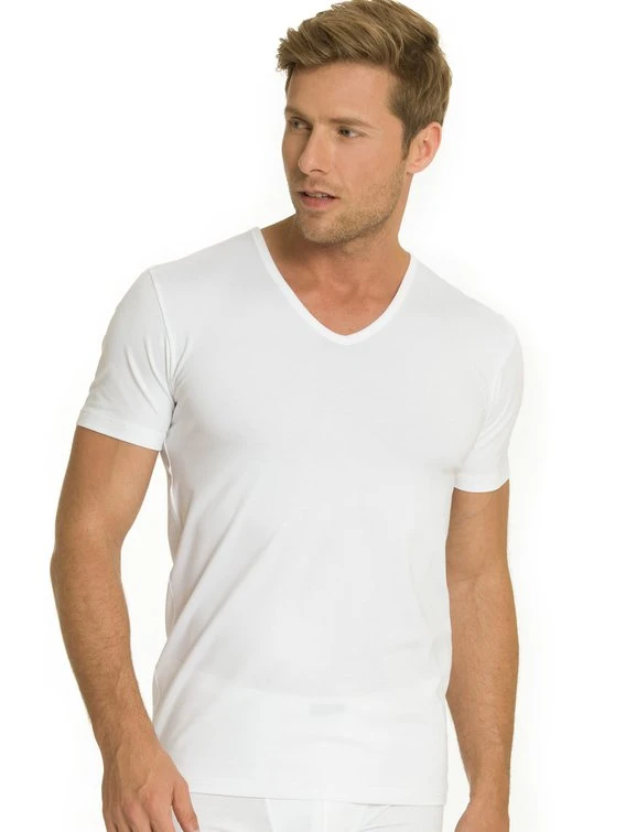 Ausgezeichnet! Eng anliegendes T-Shirt mit V-Ausschnitt aus hochwertiger Baumwolle, Micro-Coolmax und Lycra. Innovative Wäsche für den Alltagsbedarf mit optimalen Zusatzfunktionen: sehr gute Feuchtigkeitstransport, hohe Atmungsaktivität, kurze Trocknungszeit und geruchshemmende Wirkung. Spezielle Thermofixierung des Elasthans sorgt für eine perfekte Formbeständigkeit.