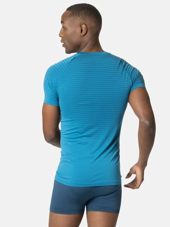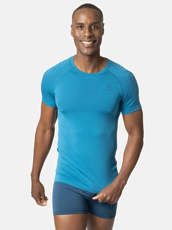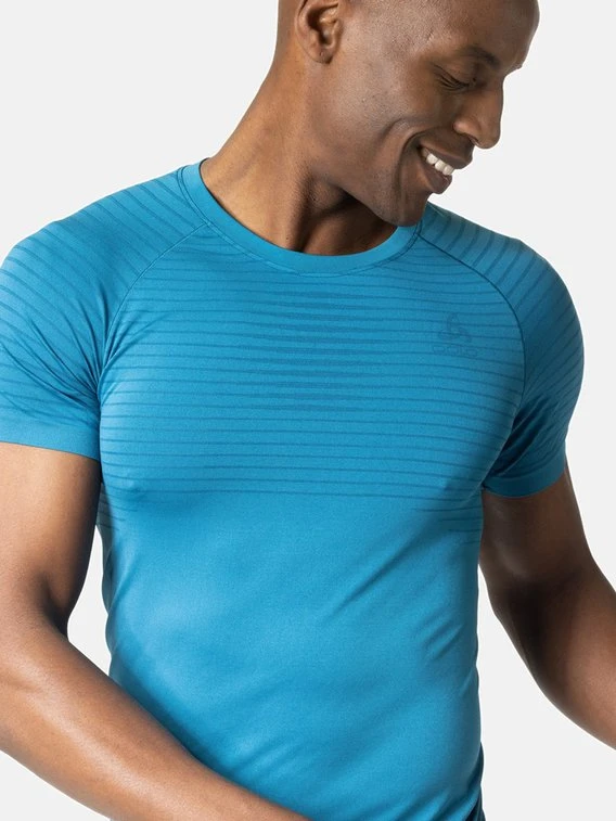 Dieses T-Shirt von ODLO ist Teil der “Perfomance X-Light Eco” Kollektion. Das Funktionsmaterial ist auf die verschiedenen Körperpartien abgestimmt und sorgt genau dort für Belüftung und Feuchtigkeitsmanagement, wo man es am meisten braucht. Mit einem Großteil an recyceltem Garn und Ceramicool-Fasern macht sich das Sport-Oberteil sowohl beim Radfahren als auch beim Wandern und im Alltag gut. Kurz gesagt: immer, wenn Kühlung und Komfort angesagt sind.
