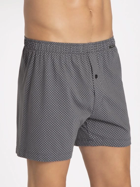 Lässige Boxershorts aus dem Hause SCHIESSER. Die Shorts überzeugt durch zeitloses Design, hochwertige Verarbeitung und einem bequemen, stoffbezogenen Gummibund mit Logofähnchen. Aus der Mode-Serie “Ebony”.