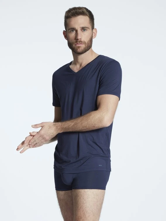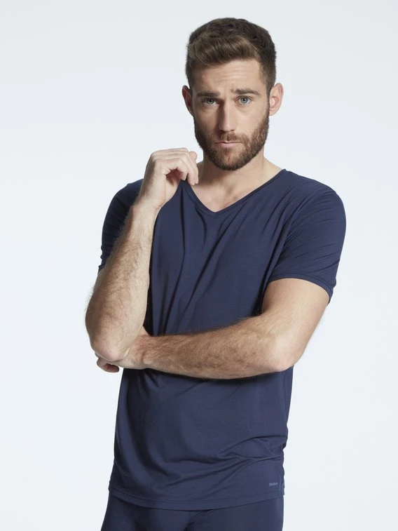 Zeitloses Design, bequem und nachhaltig, dafür steht das Kurzarmshirt mit V-Ausschnitt aus der Serie »Bamboo Deluxe« von SKINY. Die weiche und funktionale Viskose Bambus Qualität sorgt für einen angenehmen Tragekomfort. Durch das schlichte Design mit charakteristischem SKINY-Logo am Bund ist das Shirt ein Muss in jedem Kleiderschrank!