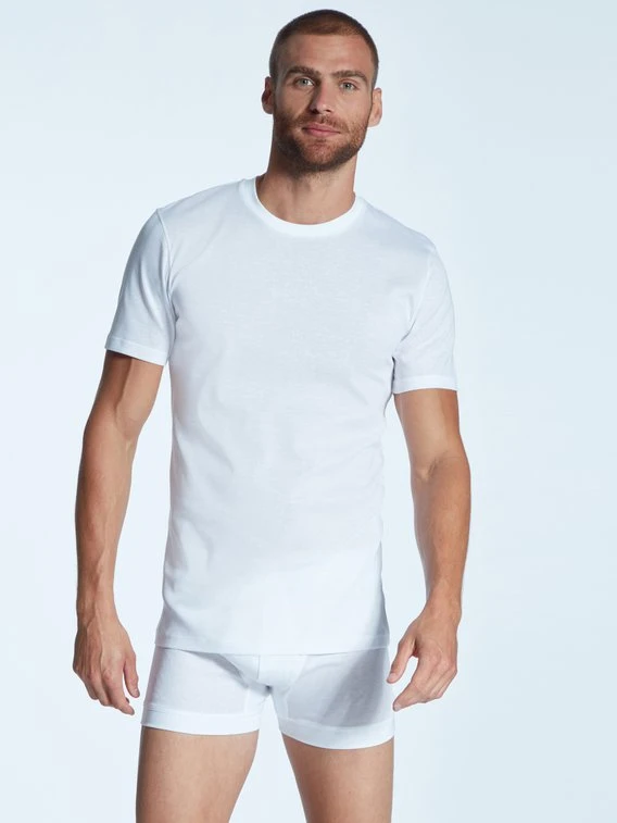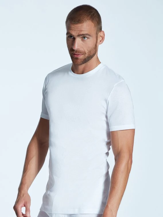 Klassisches Kurzarm-Shirt aus Feinripp aus der Serie “Business Class” von ZIMMERLI. 100% merzerisierte Baumwolle ist extra langlebig, hat eine glatte Oberfläche, leichten Glanz und einen soften Griff. Die Feinripp-Verarbeitung sorgt für Elastizität und hält das Unterhemd formstabil, selbst nach vielen Wäschen.