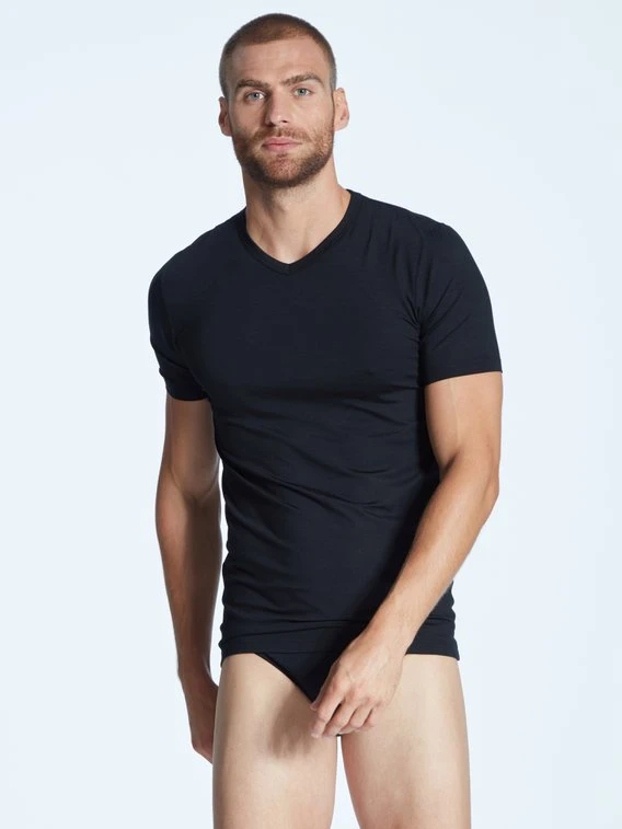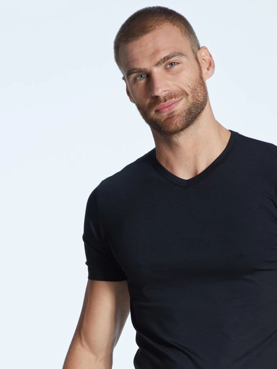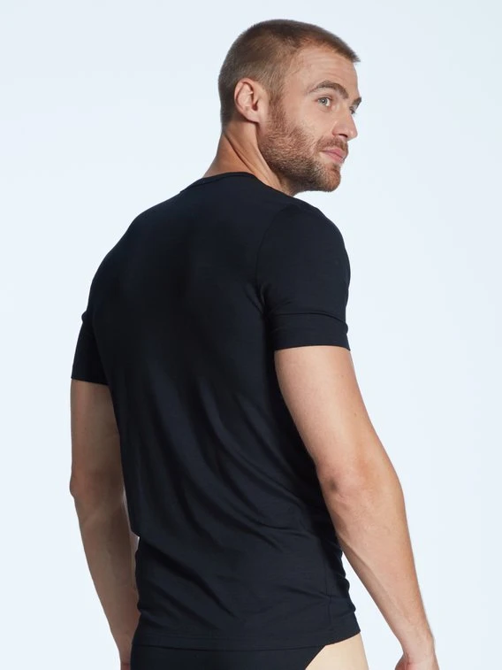 Das atmungsaktive Kurzarm-Shirt aus der Serie “Pureness” von ZIMMERLI erfüllte höchste Qualitätsansprüche. Die extra softe und feine Single Jersey-Qualität ist aus MicroModal® gefertigt. Das exklusive Material nimmt 50% mehr Feuchtigkeit auf als Baumwolle und leitet sie schnell wieder ab.